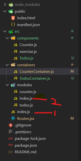 하나는 실질적으로 1번은 index.js이고, 다른 하나는 2번이 루트 리듀서의 역할을 한다.