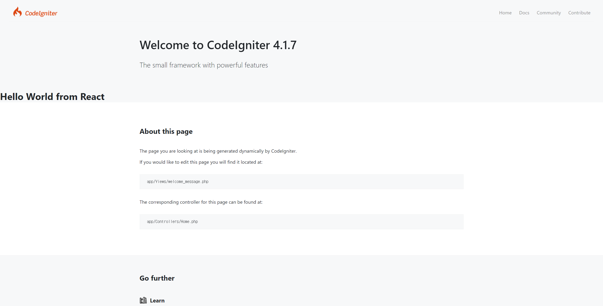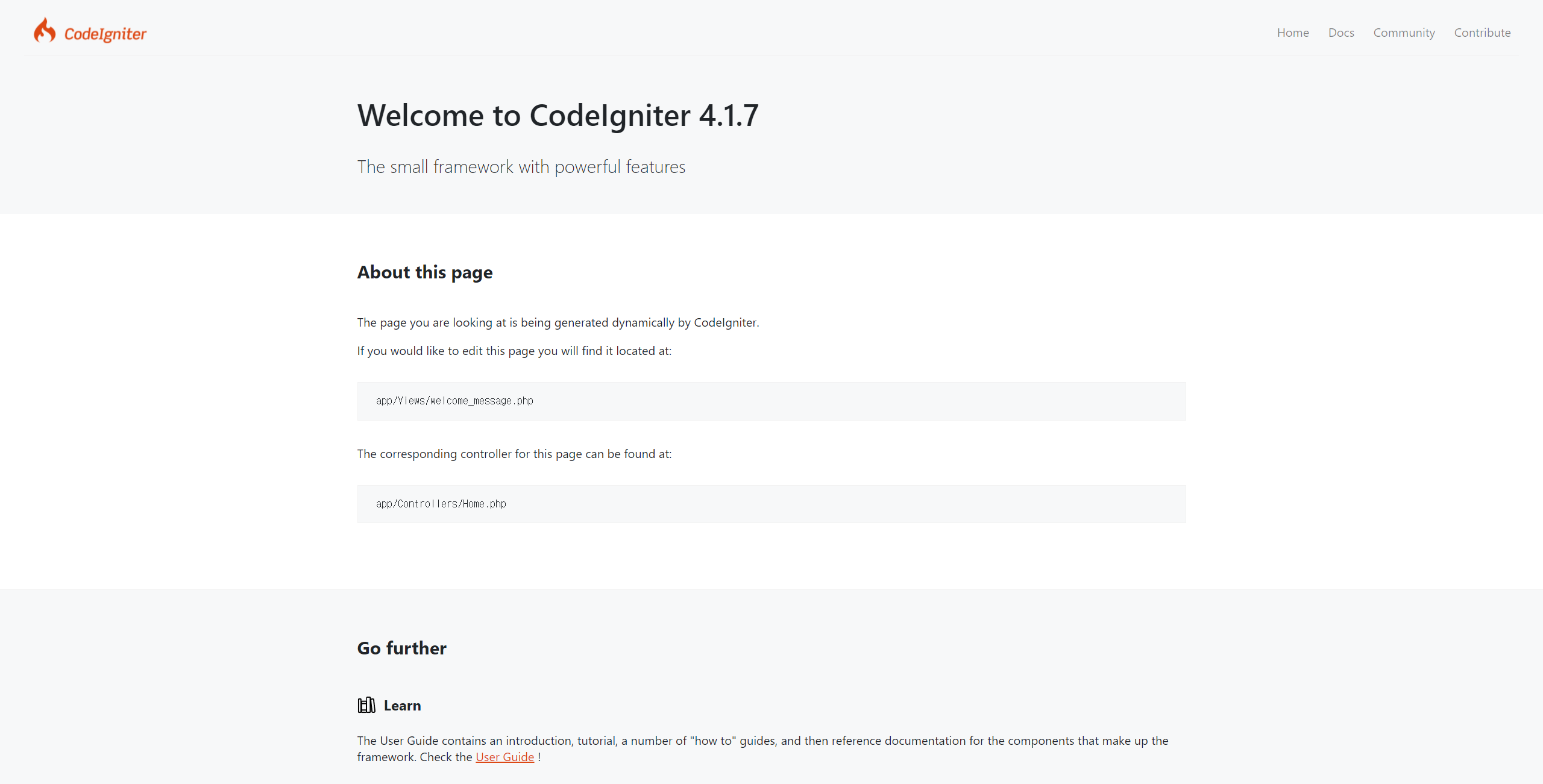 https://localhost/public/index.php로 접속시 해당 ci4화면을 볼수있을 것이다.