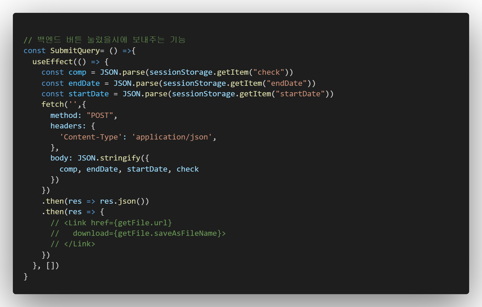 이것을 왜 구현하려해야만 했나면, 세션 스토리지로 올라가는 값들을 모두 가져와서 호출하고 있는데,