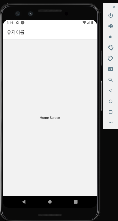 <Stack.Screen name="Home" component={HomeScreen} options={{ title: '유저이름' }}/>